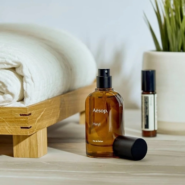 Aesop Hwyl熾香水,一款微妙的迷人香氛,使人聯想起扁柏森林的蒼翠和靜謐,煙燻香調搭配上淡淡辛香,轉為深綠的木質土壤氣息