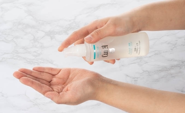 每次按壓3-4下的份量,再用手或化妝棉輕抹臉上