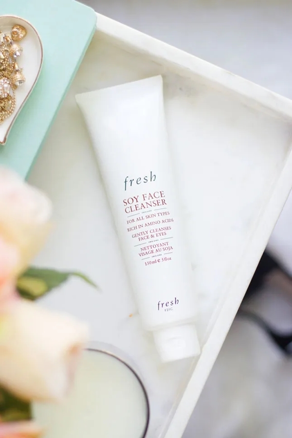 先用清水濕潤臉部,利用大豆卸妝潔面乳在臉部和眼睛上按摩,然後沖洗