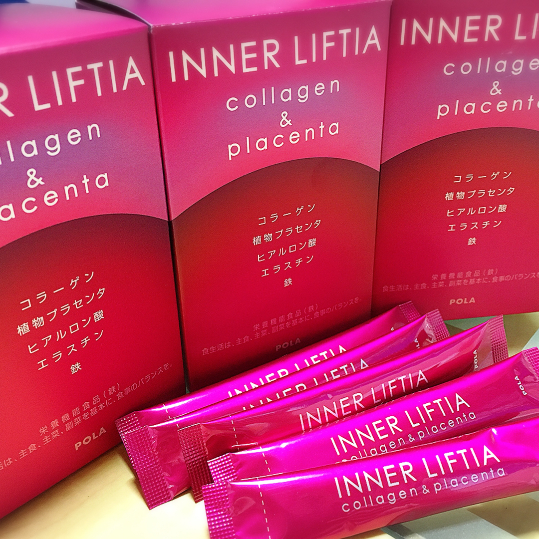 POLA INNER LIFTIA膠原蛋白粉新版本增加咗植物性胎盤素透明質酸能改善因缺水失去光澤肌膚